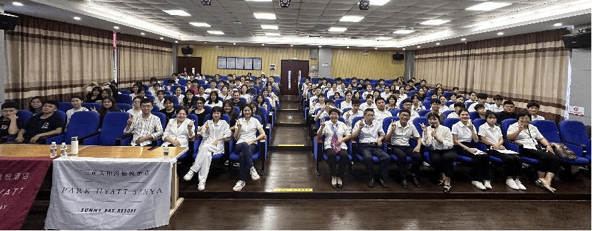 4月26日,凯悦旗下三亚太阳湾柏悦酒店、三亚高胜发展有限公司海棠湾君悦酒店两家高端酒店到我院做管培生订单班项目宣讲和校园招聘。