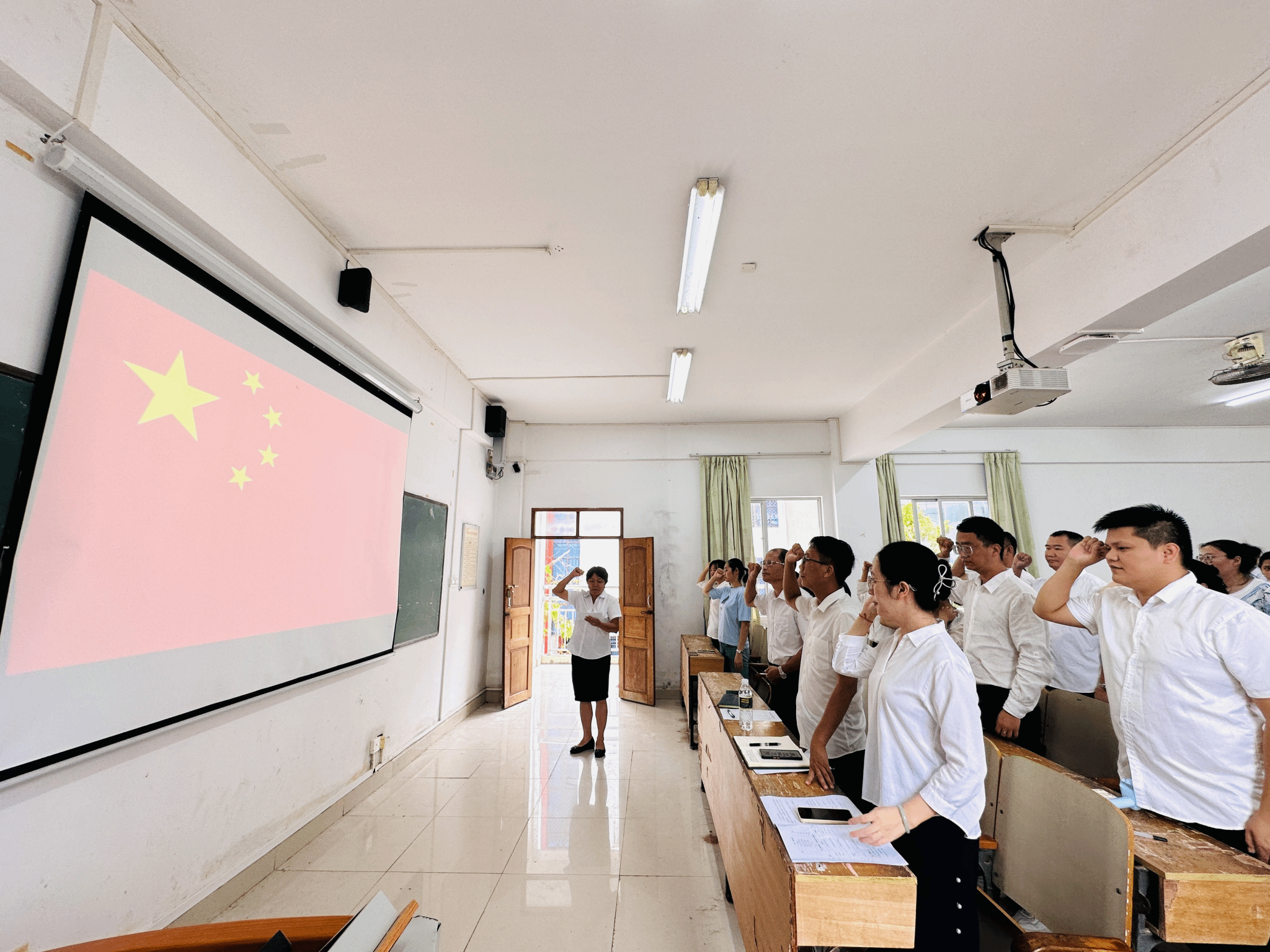 林明霞代表学院党政班子对教师们在台风“摩羯”灾后重建工作中的辛勤付出表示衷心的感谢和崇高的敬意,并向全院教师致以节日的祝贺。她回顾了学院光辉的历史,展望了学院光明的未来,并带领全体教师重温了教师入职誓词。林明霞对学院灾后重建的工作和迎新工作作部署安排,以确保学院在灾后能够迅速恢复和重建,也确保新学期的顺利开始和新生的顺利入学。
