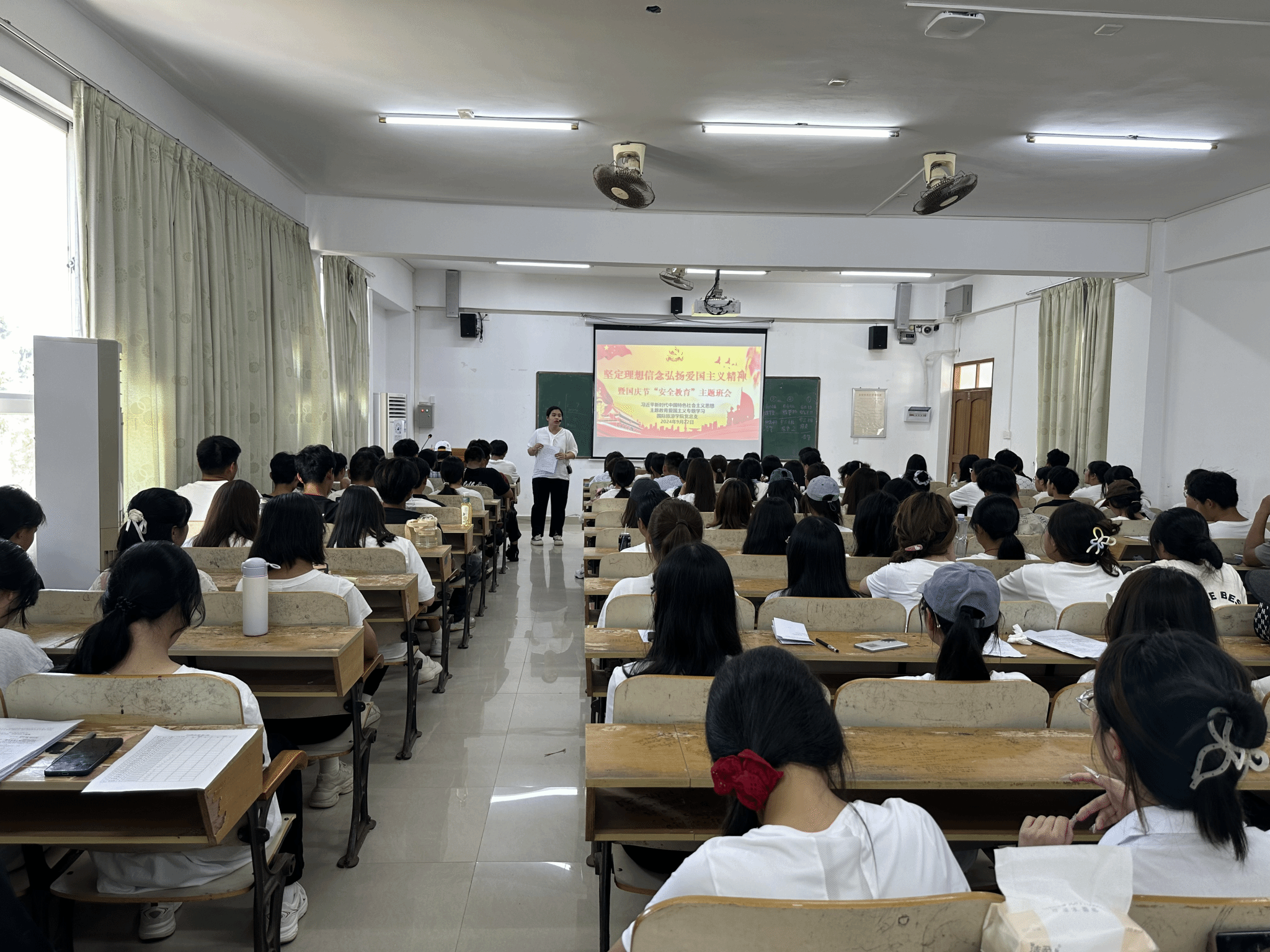 9月29日下午,我院召开主题班会开展爱国主义教育暨国庆节前安全教育,引导同学们坚定理想信念,筑牢信仰之基,弘扬爱国主义精神,培养同学们国家认同感和社会责任感。同时,提高同学们的安全意识,确保他们能够安全、愉快地度过假期。