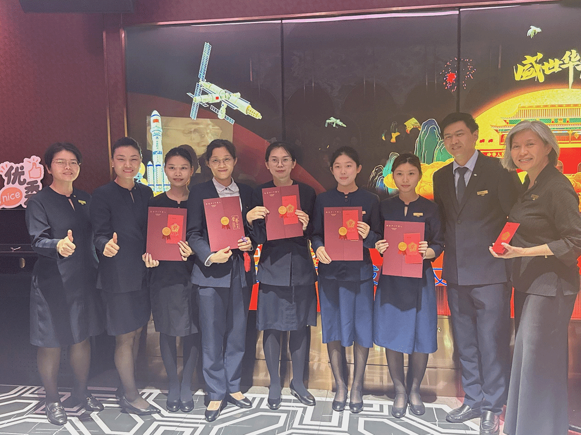 陈燕萍的职业生涯起步于雅高旗下索菲特酒店的实习机会。在这里,她迅速适应了酒店行业的快节奏工作环境,并在前厅部担任索菲特大使,负责海口索菲特酒店的接线员和礼宾员工作。她展现出了卓越的学习能力,短时间内便熟练掌握了Opera系统,这一技能使她在处理客户服务和前台运营方面游刃有余。