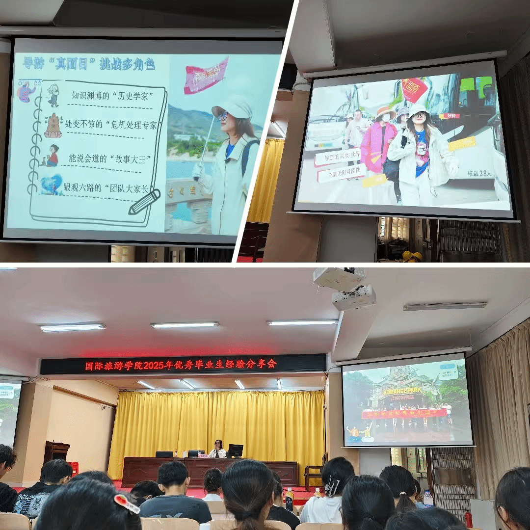 11 月 17 日上午,国际旅游学院 2025 年优秀毕业生经验分享会在学校图书馆多功能报告厅顺利举办。本次分享会邀请到2016级旅游管理专业3班的邢益云、徐晓燕两位优秀校友返校,为学弟学妹们分享职业成长历程与行业感悟,助力青年学子明确职业发展方向。