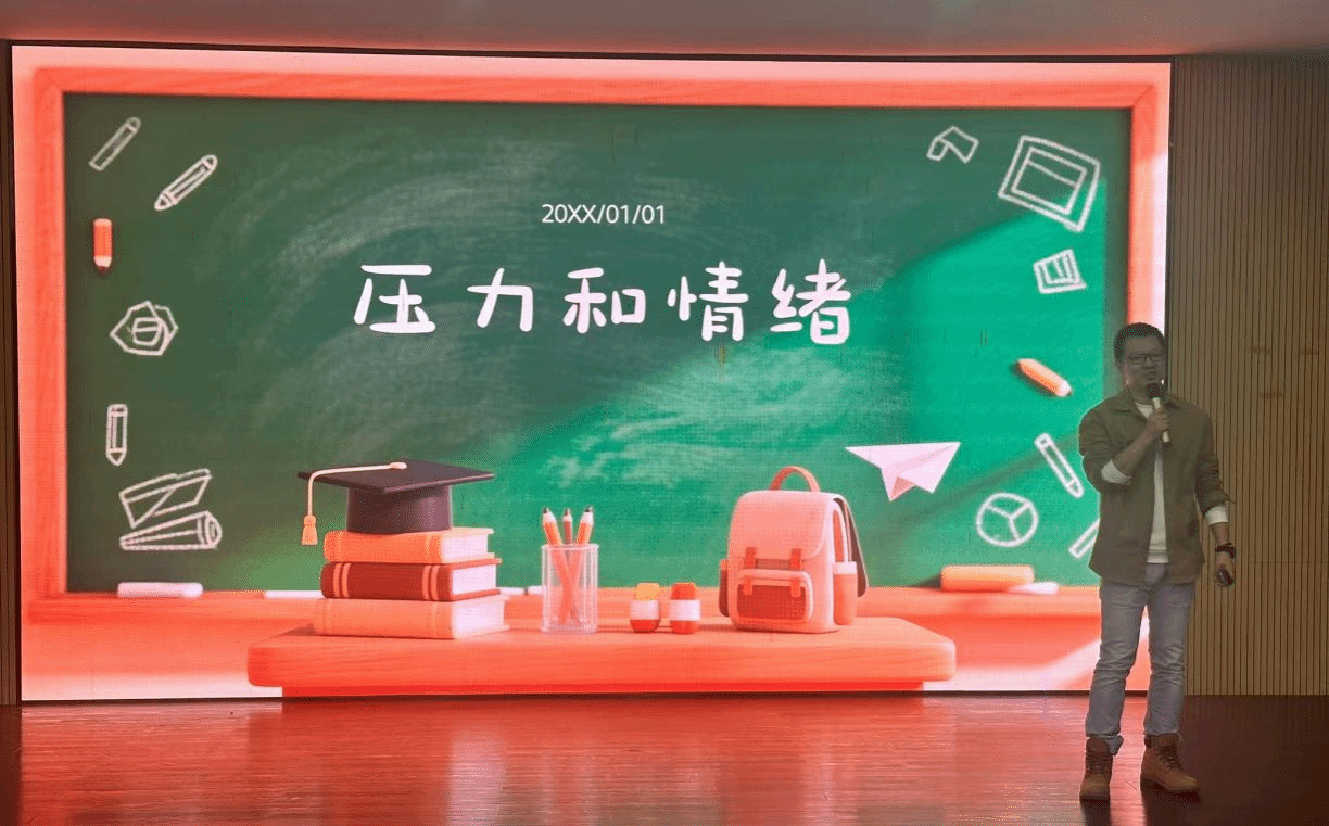 心理健康不仅关乎着青少年当下的校园生活品质,更是构筑他们未来人生大厦的关键基石。刘焱老师从压力的定义和来源、压力的影响、情绪的定义与产生以及情绪的管理方法四个方面进行了深入浅出的讲解。刘焱指出,长期的压力可导致焦虑和抑郁情绪,不仅会对身体带来负面影响,甚至容易影响到日常的生活和工作,因此要正确认识和调节情绪,通过自我观察,识别身体上和心理上的变化,还要定期记录情绪变化的时间、地点、原因等信息,以健康的方式释放压力,积极进行自我对话和自我肯定,改善情绪状态。