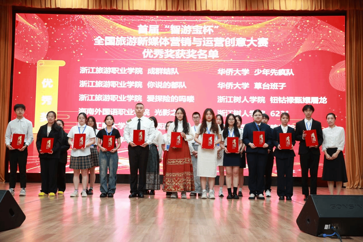 本次大赛旨在激发大学生对旅游新媒体营销的热情,提升他们的实战能力。比赛吸引了来自全国各地的数百支队伍参加,竞争激烈。经过初赛,全国各地共80支队伍晋级决赛。我院派出的两支代表队在指导老师的精心指导下,经过数月的筹备和训练,最终在众多强手中脱颖而出。