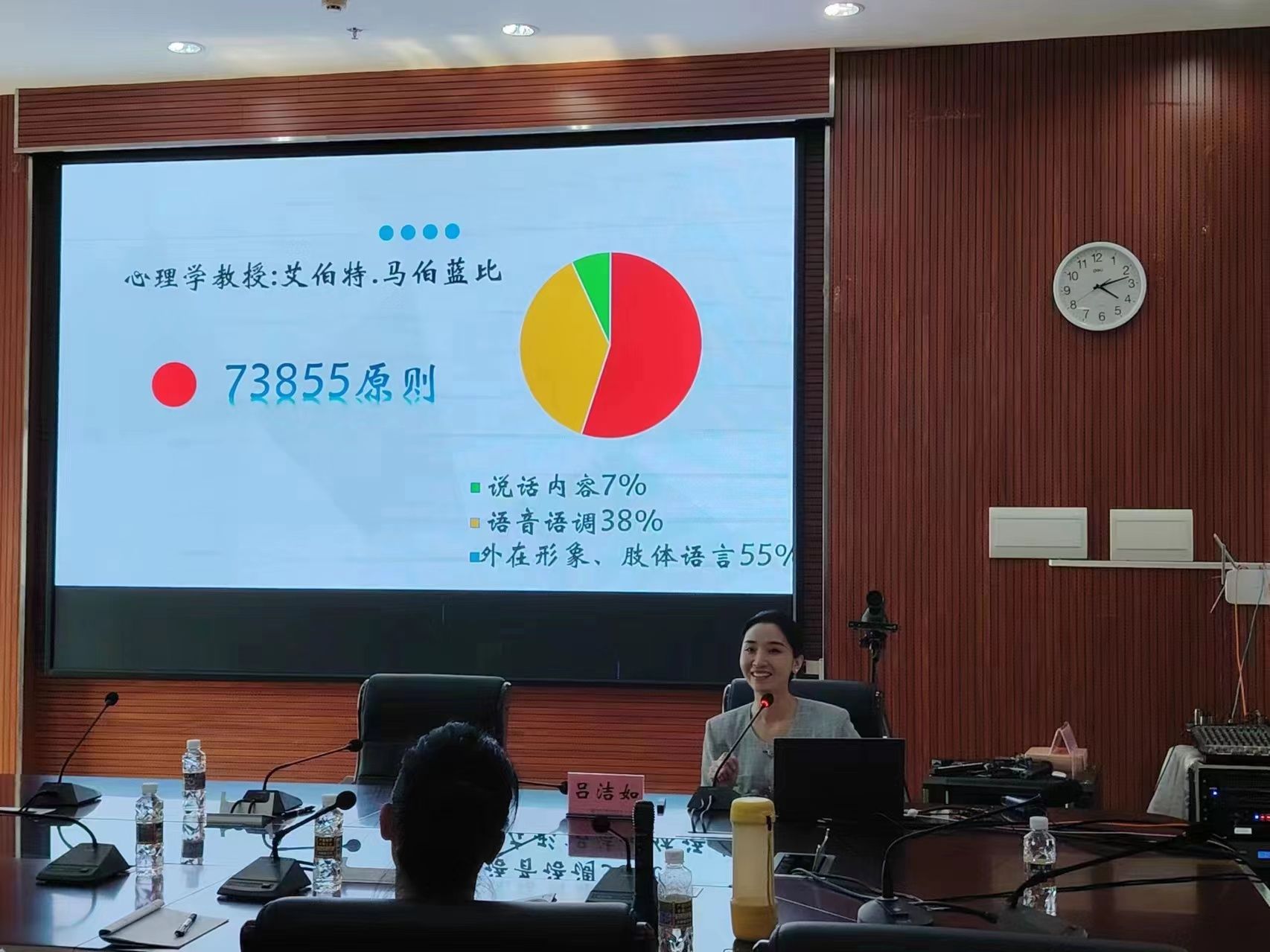 吕洁如老师分别从教师仪容管理、教师服饰礼仪、教师仪态要求、教师沟通礼仪等方面,给全体老师送上了一次别开生面的“礼仪盛宴”。她通过理论讲解、案例分析、示范展示、现场演练等多种形式,生动形象地阐释了教师之“美”形成途径,指导老师们正确整理仪容,掌握教师服饰礼仪和沟通礼仪,要求教师以自身良好形象影响学生,不断提高育人实效。