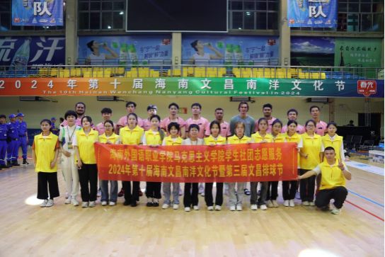 2024年第十届海南文昌南洋文化节暨第三届文昌排球节“春光杯”九人排球邀请赛于4月5日—7日在文昌排球馆隆重举行,马克思主义学院学生社团指导教师应邀带领beat36514名师生志愿者为大赛提供翻译、引导等志愿服务,保证比赛顺利进行。