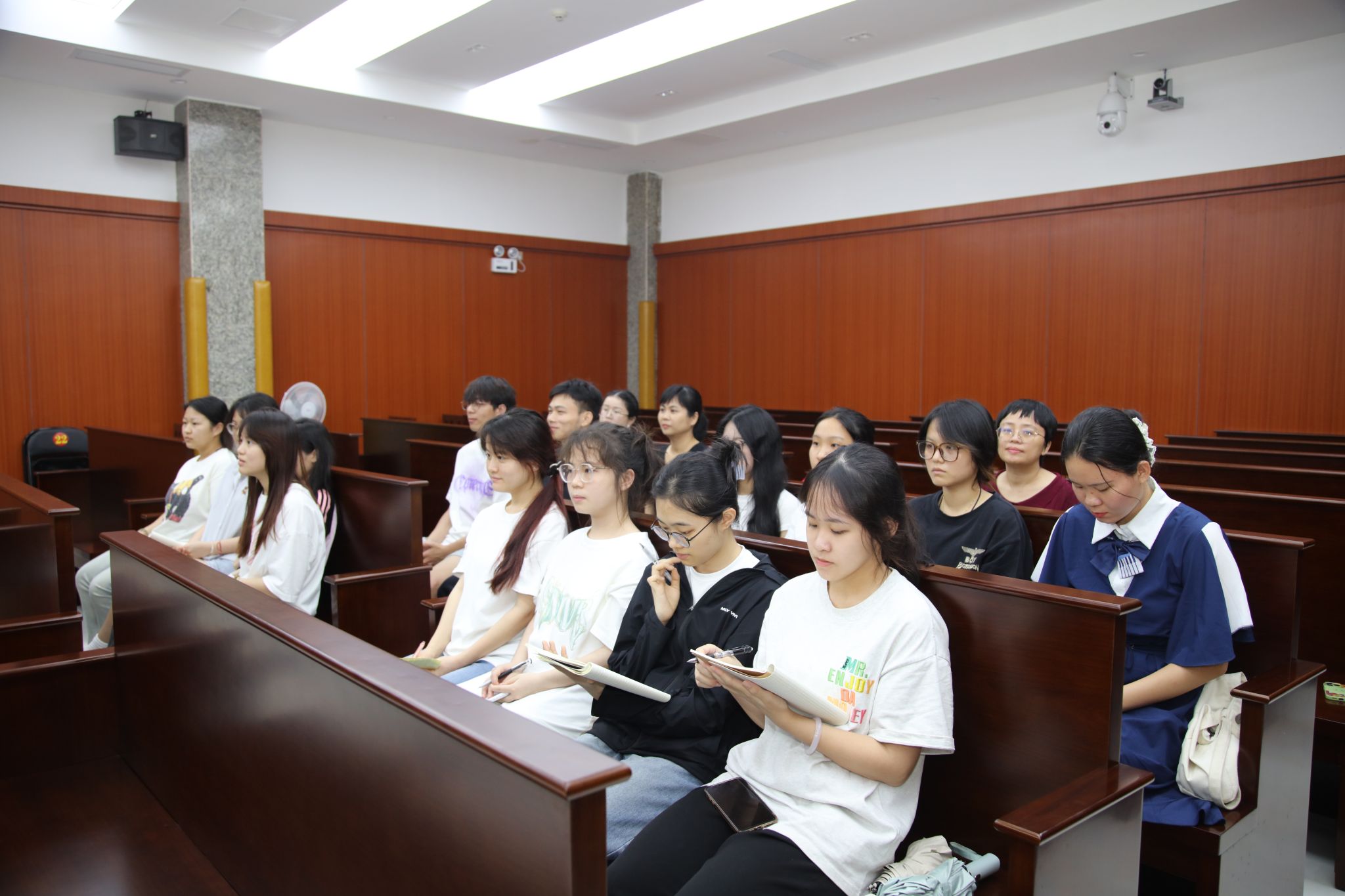 本次庭审有“危险驾驶案”和“盗窃案”两个案件,庭审过程公开透明、程序规范、流程高效,体现了司法的公正性与严谨性,坐在法庭里旁听的学生仔细聆听,认真观摩庭审各项环节,时不时地记录相关法律知识。庭审结束后,带队教师“趁热打铁”,结合审理的案件进行以案释法,帮助学生加深对课堂学习的相关法律知识的理解。