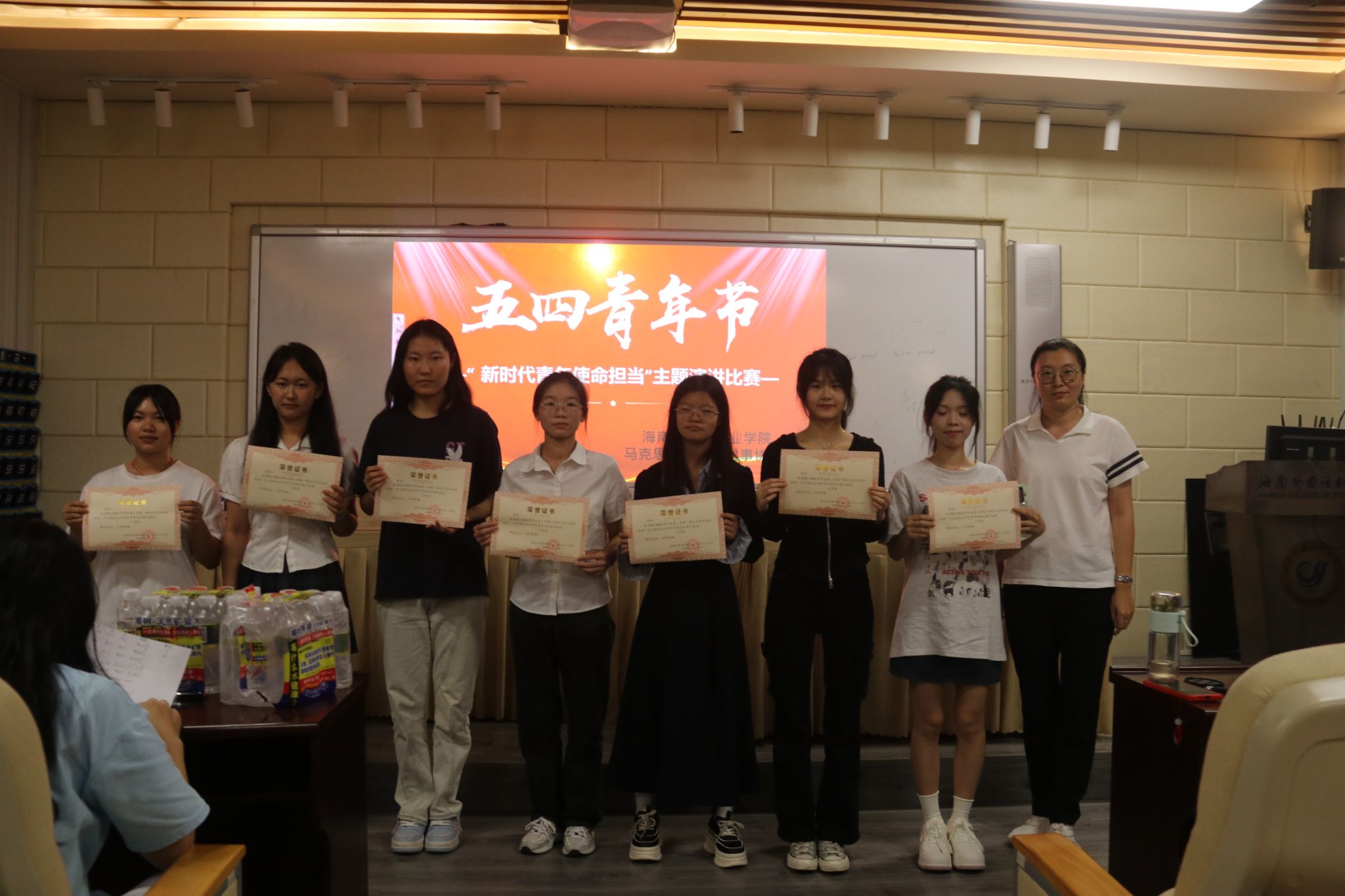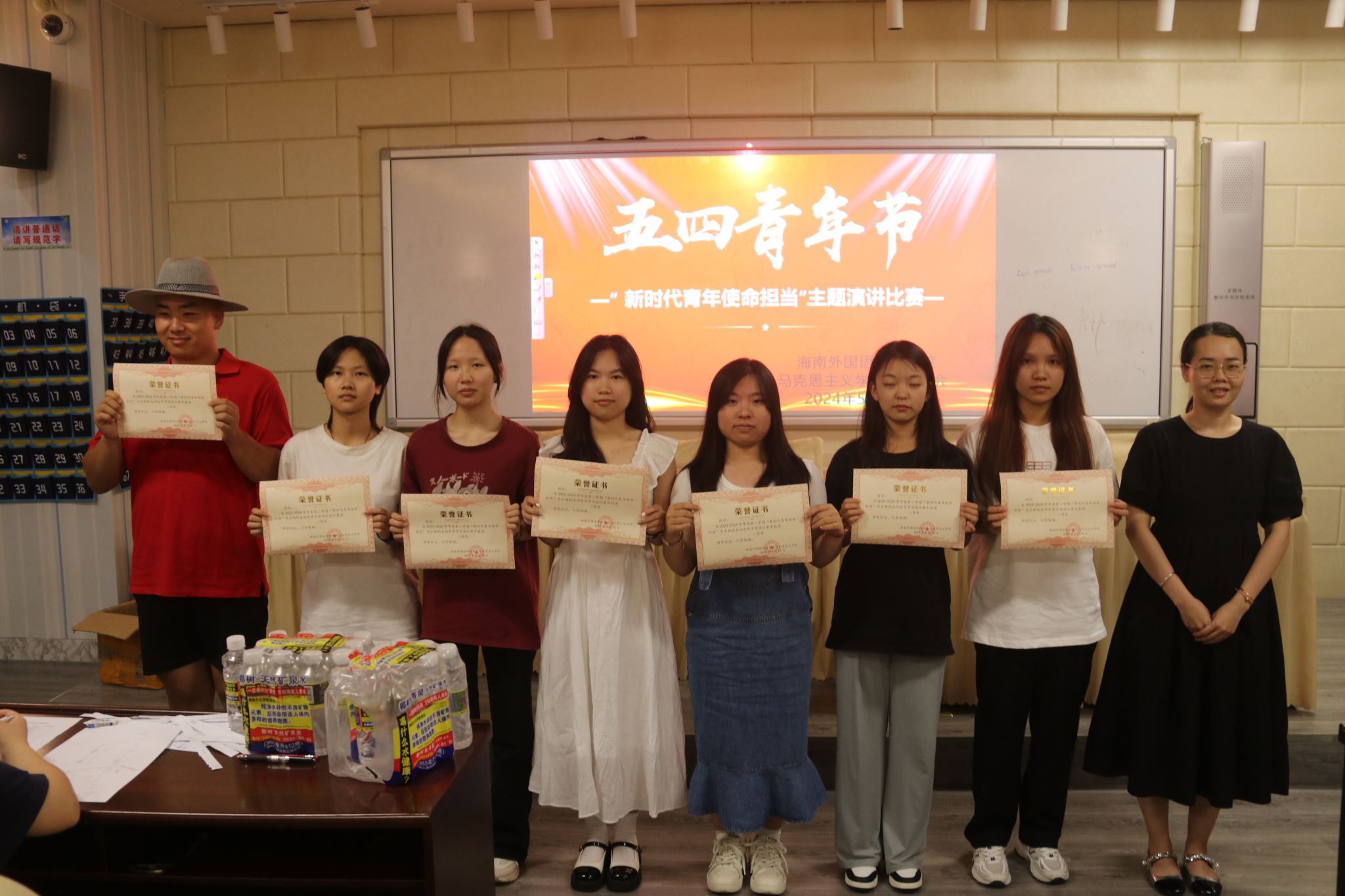 2024年5月15日,马克思主义学院时事协会在综合楼BE101教室举行“新时代青年使命担当”演讲比赛活动,共有20组会员参加比赛,声情并茂的演讲引起在场会员们的共鸣。阎毅、林陈雅和蒙倩娇三位老师担任此次比赛评委。