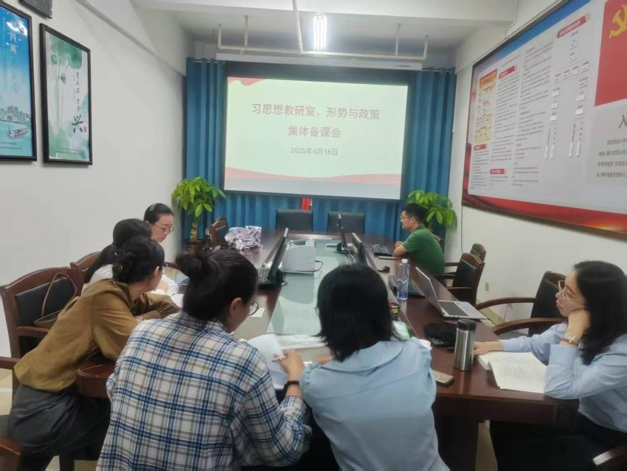 马克思主义学院形势与政策课教研室2025年4月16日开启第四次集体备课会,备课会教研室主任张敏主持,全体老师参加。