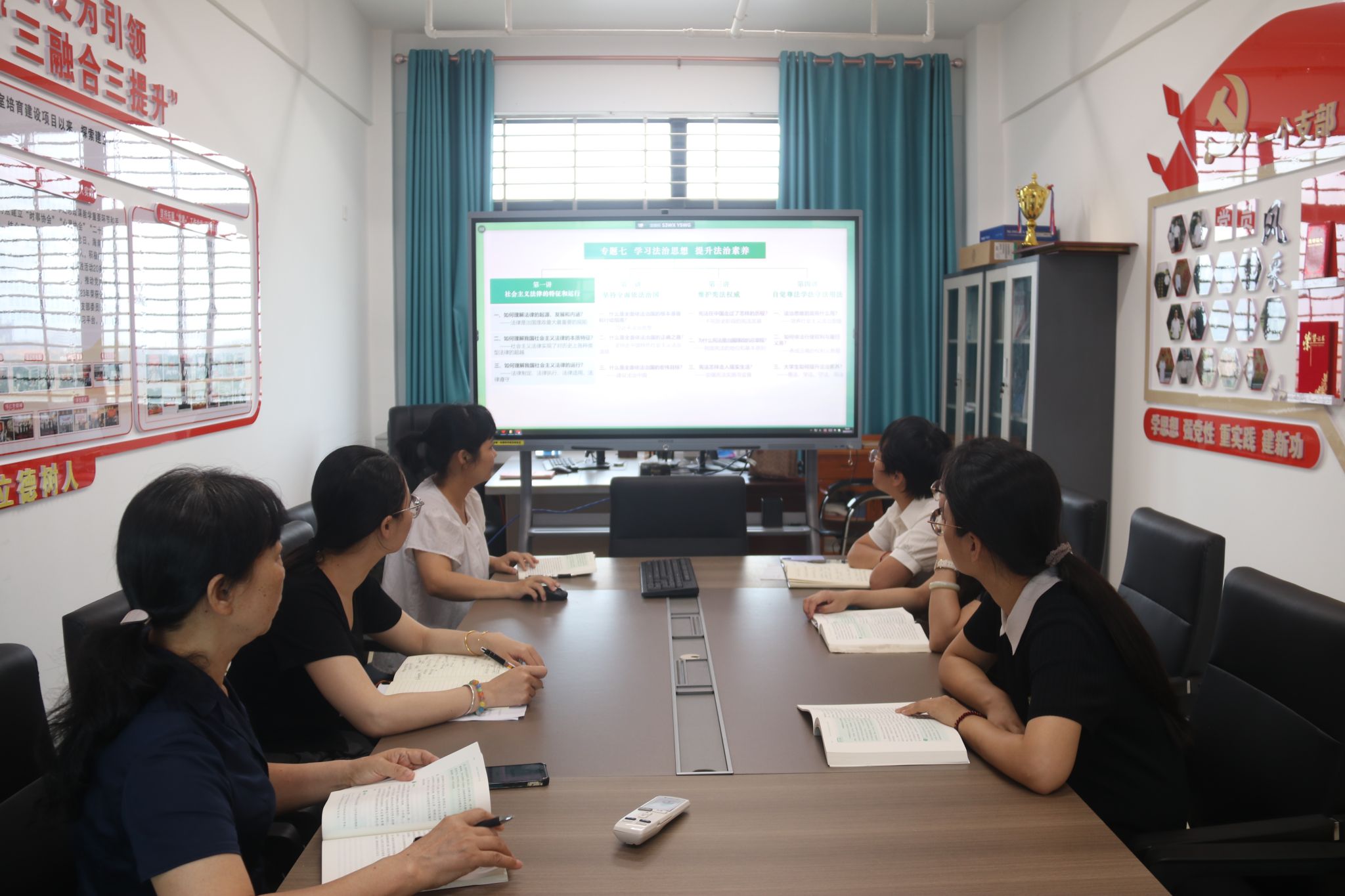2025年4月25日,思想道德与法治课教研室召开了2025年春季学期第四次集体备课会。备课会由教研室主任陈若团副教授主持,肖宝佳老师主备,本次备课会围绕《思想道德与法治》第五章第三节“投身崇德向善的道德实践”教学内容展开深入研讨,教研室全体教师参加。