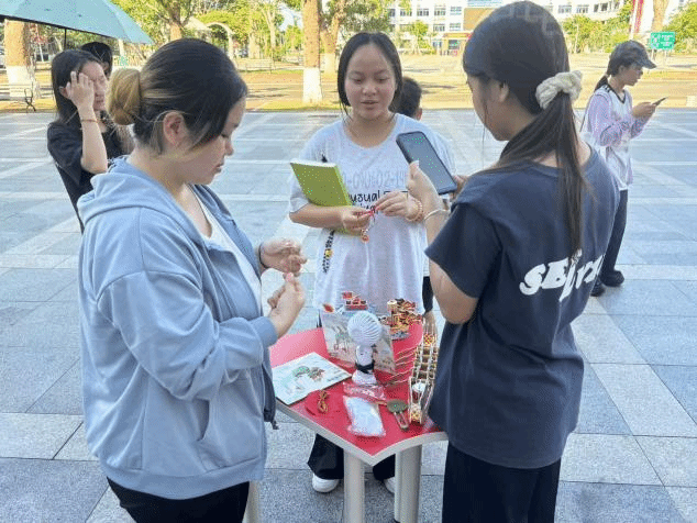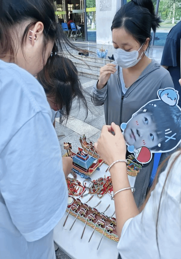 活动以“知识-技艺-精神”为主线,设置三大体验区。在“端午知多少”互动问答环节,通过趣味竞答追溯端午节历史,从屈原投江的爱国典故到赛龙舟、佩香囊等民俗,参与者以答题形式梳理文化脉络,现场气氛热烈。在沉浸式背诵关于端午诗词环节,通过背诵屈原的“路漫漫其修远兮,吾将上下而求索”、苏轼的“彩线轻缠红玉臂,小符斜挂绿云鬟”等经典诗词,在朗朗书声中,同学们感受到中华诗词的博大精深,也展现出青年学子对中华优秀传统文化的热爱。