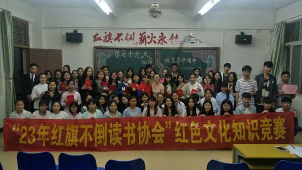 为学习贯彻十九大精神,不忘初心,牢记使命,弘扬琼崖革命传统,铭记历史,传承爱国情怀,我院思想政治理论课教学科研部于12月5日20:00—21:30在第二教学楼“23年红旗不倒读书协会”活动室,举办了红色文化知识竞赛。此次比赛由思想政治理论课教学科研部主办,由“23年红旗不倒读书协会”承办,并邀请了思政部周清云主任、周丽萍老师和赵佳钰老师担任评委。