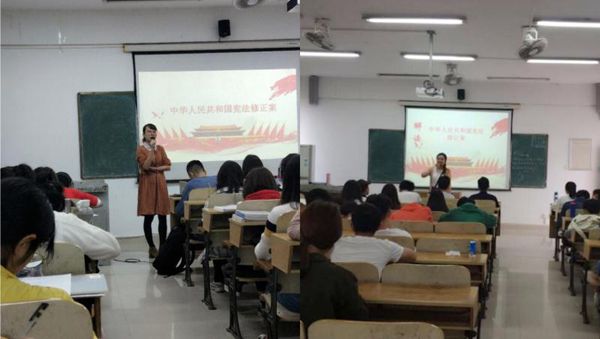 我部教授《毛泽东思想和中国特色社会主义理论体系概论》课的9名教师经过集体备课,反复进行教案修改,精心制作课件。在专题讲授中,教师们通过本次修宪的重大意义、基本原则、主要内容三个方面进行深入细致的解读,内容丰富,资料详实,以案说法,旁征博引,收到了较好的教学效果。本次专题讲授面向我院大一和大二全体学生,起到了广泛宣传宪法精神,提高社会主义法治意识的作用。