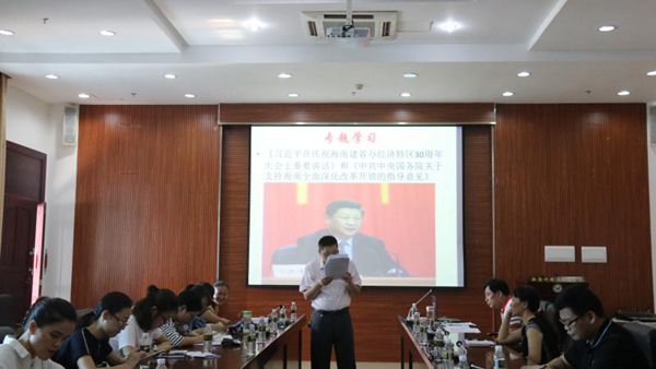 为全面学习宣传贯彻习近平总书记在庆祝海南建省办经济特区30周年大会上的重要讲话精神,学习榜样的力量,不忘初心,牢记使命,进一步提升党员的理论水平、政治觉悟,2018年5月7日下午,思想政治理论课教学科研部党支部组织全体党员在综合楼七楼会议室二召开集中专题学习会议。会议由第二党支部书记周群林同志主持。