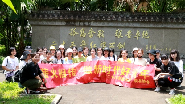 为全面贯彻落实十九大精神和习近平总书记4.13重要讲话精神,庆祝中华人民共和国成立70周年,传承琼崖革命精神,讲好海南故事,“二十三年红旗不倒”读书协会开展“传承红色基因,做新时代好青年”参观活动。5月26日,指导老师赵佳钰、思政部张敏老师带领30名会员参观了中共琼崖第一次代表大会旧址和冯白驹故居。学院关工委韩祝畴主任、陈献积老师全程参加本次活动。