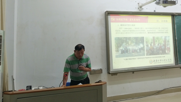 又是一个金秋的十月,又是一个收获的季节,又是一年迎新时。“二十三年红旗不倒”读书协会以“不忘初心、牢记使命、做新时代琼崖革命精神的传承者和接班人”为主题的会员大会于2019年10月24日在综合楼AE102教室召开。出席此次会员大会的有,关工委韩祝畴主任、莫运深副主任、陈献积老师和思政部概论教研室主任兼协会指导教师赵佳钰和思政部张敏老师以及新老会员共约80人。