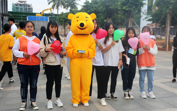 为呼吁广大学生关爱自我心理健康和成长,引导大学生认识自我价值、悦纳自我,树立起积极健康、自信务实、关爱他人的人生观,11月28日,我院在体艺馆举办主题为“阳光心情 放飞青春”的大学生心理健康教育活动。 活动由学院心理社团成员及指导教师组织发起,现场派发心理健康宣传手册、明信片以及水性笔,参与者写下真心话后随即现场赠与他人,分享心情。活动现场氛围热烈,同学们热情高涨,在送出明信片后还领取了爱心气球,并且踊跃与心情人偶合影留念,记录下开怀大笑的美好时刻。