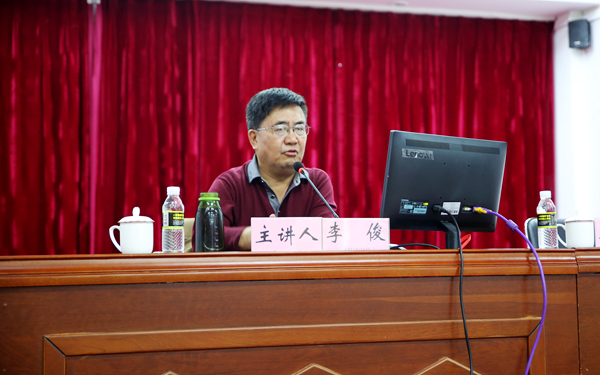 报告会上,李俊教授以《不忘初心、牢记使命,推进新时代“第五现代化”》为题,紧扣四中全会主题,运用生动的案例、详实的数据,深入浅出、通俗易懂地对全会精神进行解读,进一步加深了大家对四中全会精神的理解和领悟。