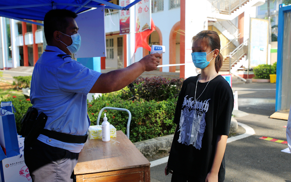 根据要求,返校学生进入校园前,需经过自动消毒通道和测温门,并在二次测温点进行手动测温均正常后,才能进入校园。