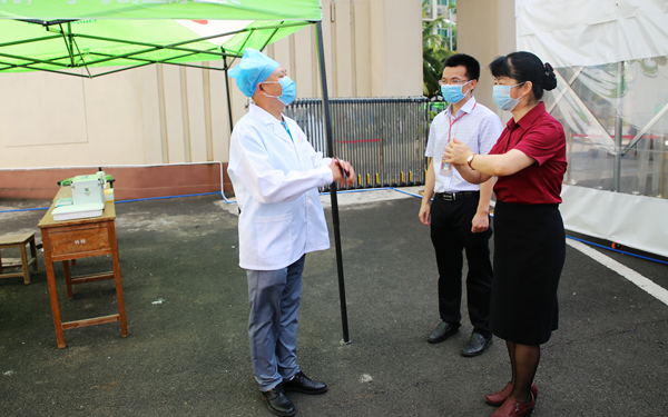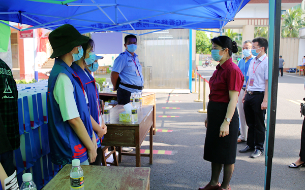 她还查看了学生入校时的消毒及测温通道等防疫设施设备运行情况,对为每位返校的同学准备的“爱心防疫物资包”、解暑绿豆汤和各部门在校门口贴心准备的遮阳伞、折叠扇、发夹、风油精等暖心物品表示赞许。