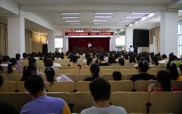 6月9日下午,学院党委委员、党委办公室(宣传统战部)主任(部长)梁松在图书馆多功能报告厅为英语系学生讲授一堂生动的形势与政策课。他以《大变局中的中国与世界》为题,结合我国当下的形势,以通俗易懂的话语和不同层次的视角,回顾了人类社会历史发展的历程,带领我们重新领略了中国之发展。