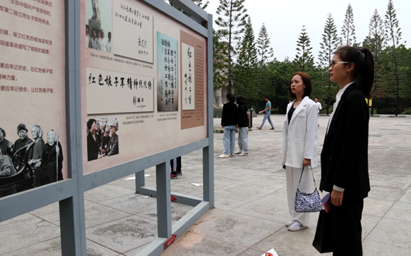 在红色娘子军纪念园参观时,会员们了解到红色娘子军从1931年5月1日成立到1932年,只存在了1年多的时间,但是在这短短的1年多的时间里,红色娘子军参加了50多场战斗,成为中国近代百年以来,工农红军历史上,唯一一支建制完整的女兵战斗连队,她们功勋卓越、声名远扬。在椰子寨战斗遗址,会员们在赵佳钰老师的指挥下,一同唱响了《万泉河水清又清》这首歌,大家激情飞扬,歌声响彻整个椰子寨,随着万泉河水漂流到远方。