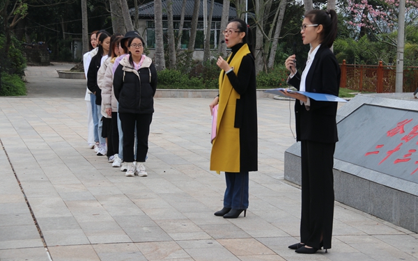 为了树立共产主义信仰,继承先辈遗志,“二十三年红旗不倒”读书协会开展“传承红色基因 不负时代使命”参观活动。2020年12月6日,思政部概论教研室主任、“二十三年红旗不倒”读书协会指导老师赵佳钰、思政部张敏老师带领39名会员参观了椰子寨战斗遗址和红色娘子军纪念园。学院关工委韩祝畴主任全程参加了本次活动。