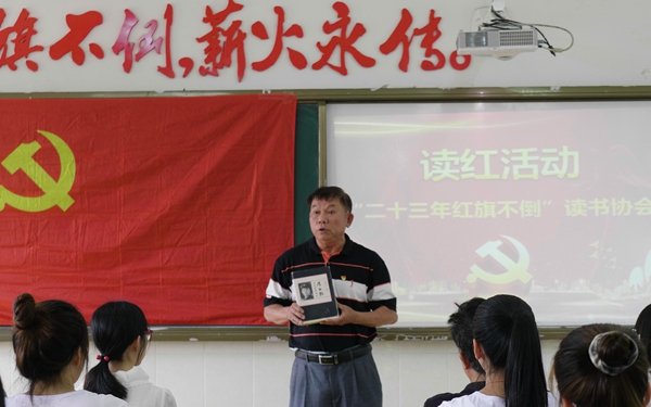 拍摄视频中,学院党委副书记黄丽芹总结了协会从2017年成立以来的工作成果,充分肯定“二十三年红旗不倒”读书协会在学院思想政治教育工作中起到的重要作用;思政部主任周清云要求协会会员,传承红色基因,把“红旗不倒”的坚定信念、伟大精神根植于心中,让红色基因渗进血液、浸入心扉,树立正确的世界观、人生观、价值观,激发爱国情怀,培养对党的感情;关工委主任韩祝畴讲述海南“二十三年红旗不倒” 的光辉革命历史;赵佳钰老师为会员们讲述1921年7月中国共产党成立的光辉历史;张敏老师为会员们讲述1927年中共领导的琼崖革命军队的诞生。