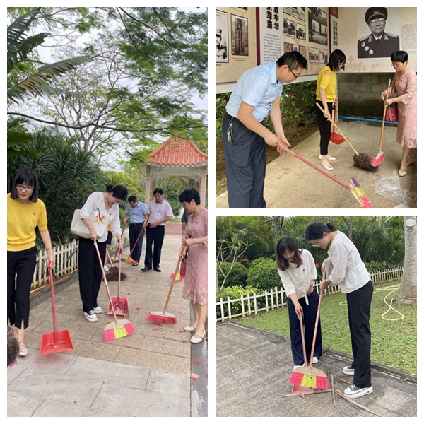 为进一步增强党员凝聚力和先锋模范作用,2021年4月29日下午,思政部直属党支部组织全体党员开展志愿服务主题党日活动,到文昌张云逸纪念馆进行大扫除。