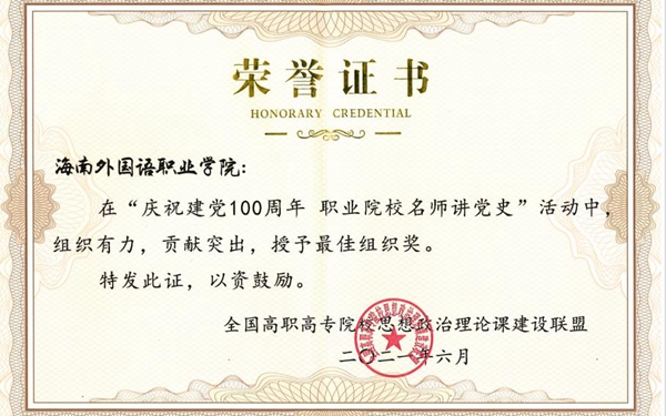 我院作为全国高职高专院校思想政治理论课建设联盟理事单位,学院党委书记佴建乔高度重视此次活动,要求思政部统筹部署。思政部主任周清云协调海南省三所高职院校曾获教学比赛一等奖的五位思政课教学名师参与视频录制,按时按质按量向联盟提交了视频。我院在此次活动中因组织有力,贡献突出,荣获最佳组织奖。