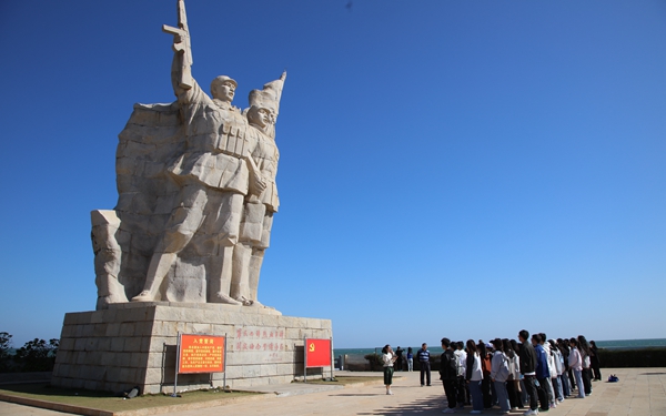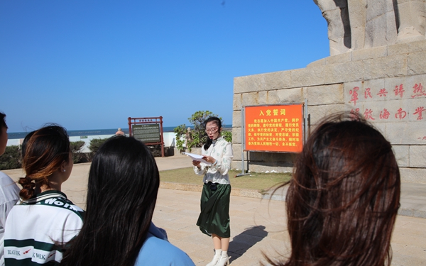 首先,由我院关工委韩祝畴主任讲述琼崖纵队“二十三年红旗不倒”的光辉历史。接着,协会指导教师赵佳钰宣读了“二十三年红旗不倒”读书协会社团章程并向各位新、老会员介绍了新一任学生干部人选。然后,赵佳钰老师深情地讲述了从1927年9月23日椰子寨战斗到1950年5月1日海南岛全岛解放这段“二十三年红旗不倒”的光辉历史,并介绍了临高角解放公园。最后,全体会员在陈献积老师的带领下唱响了红色歌曲《万泉河水清又清》,大家激情澎湃地唱出了渡海战役中红军与百姓的“军民一家亲”的深情厚意。歌曲毕,赵佳钰老师带领全体会员在这庄严而神圣的土地上一起喊出口号:“孤岛奋战,艰苦卓绝,‘二十三年红旗不倒’。賡续英雄血脉,传承红色基因,薪火永相传,红旗永不倒!”,让红色口号响彻琼崖大地。