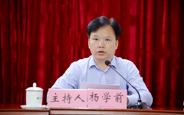 学院院长杨学前主持会议,要求全体党员干部要深入贯彻落实此次会议精神、全力抓好学院全面从严治党工作,做到学习领会要到位、工作部署要到位、责任落实要到位、监督检查要到位。