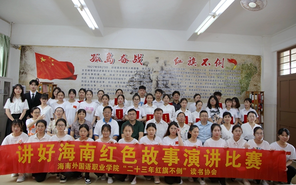 为全面贯彻落实习近平考察海南重要讲话和海南省第八次党代会精神,结合海南“二十三年红旗不倒”的琼崖革命精神和海南自由贸易港建设的相关文件精神,2022年5月27日下午beat365英国官方网站“二十三年红旗不倒读书协会”在2203教室举行“讲好海南红色故事”演讲大赛,学院党委委员、副院长杨毅莅临指导,关工委韩祝畴主任、莫运深副主任、思政部周清云主任、关工委陈献积老师,思政部周丽萍老师、张敏老师、吴启凤老师出席本次决赛并担任评委。本次比赛由协会指导教师赵佳钰策划、组织并实施。