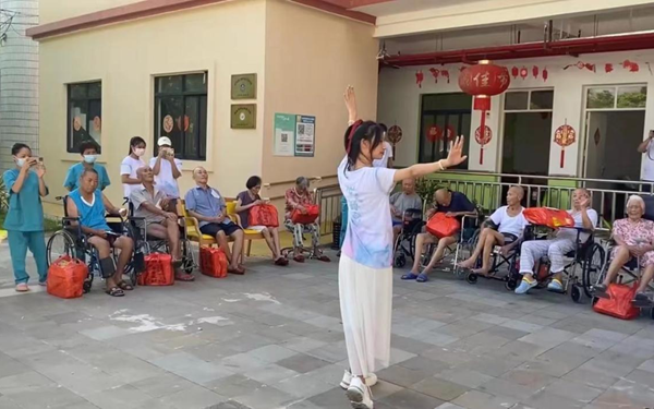 为了增添活动的多样性,会员们还为老人们献上了精心准备的才艺表演。歌曲《地道战》独唱,手语《和你一样》合唱,舞蹈《万疆》和《我和我的祖国》等等精彩的表演让在场的老人们都拍手叫好,活动的气氛也活跃了起来,欢声笑语充满整个光荣院。