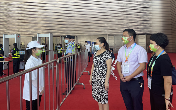 我院志愿者主要工作岗位分为门禁安检组、方向指引组、品牌保障组、展台和服务台组、赞助商服务组、时装周服务组(包括后台穿衣和秀场保障组)。其中,门禁安检组的主要任务是负责消博会3-5号三个安检口的安检工作,他们顶酷暑战烈日,为消博会的安全保障工作默默奉献。方向指引组主要负责为参加消博会的嘉宾和观众提供路线指引服务,可谓是消博会期间的活地图。品牌保障组主要负责消博会期间参展品牌的相关保障服务。展台和服务台组则在消博会各服务台提供相关咨询服务。赞助商组主要协助本次消博会赞助商开展工作。时装周服务组主要负责时装周期间秀场布置、模特更衣等服务保障工作。