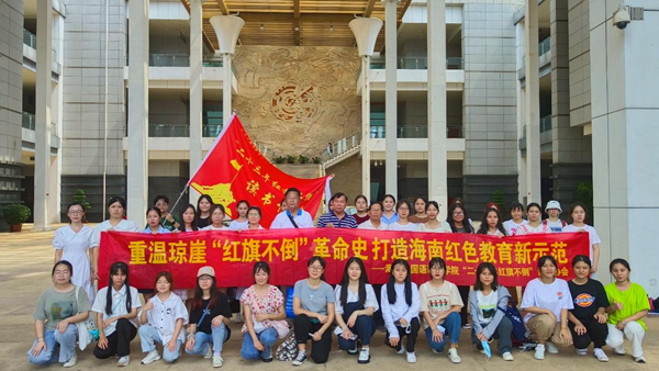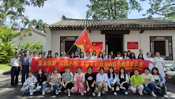 为重温琼崖“红旗不倒”革命史,打造海南红色教育新示范,2022年7月5日,“二十三年红旗不倒”读书协会赴中共琼崖一大会址及海南省博物馆开展实践教学。此次实践教学由关工委韩祝畴主任、莫运深副主任为指导顾问,思政部概论教研室主任兼协会指导教师赵佳钰组织实施,关工委陈献积老师和协会41名学生会员全程参加了本次活动。