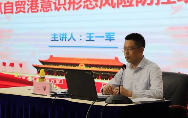 省委宣传部意识形态和舆情信息处王一军副处长以《强化风险意识 增强斗争本领 打赢自贸港意识形态风险防控攻坚战》为题,从“当前我省意识形态领域的主要风险点有哪些”“怎么做好自贸港的意识形态工作”等五个方面进行深入讲解。