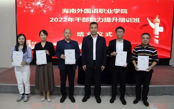 在圆满完成各项培训任务后,12月11日下午,培训班结业式在中国(海南)改革发展研究院会议楼第二会议室举行。学校党委委员、副校长梁松在总结讲话中指出,本次培训主题鲜明、内容丰富、形式多样、成效显著,全体学员要按照学校党委的决策部署,不断提高推进学校高质量发展的能力和素质,主动作为、敢于作为,在推动学校高质量发展上出实招、使实劲、求实效,为建设高水平高职学校作出新的更大贡献。