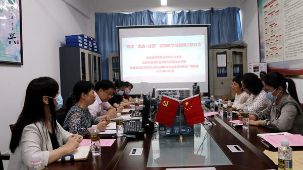会上,陈若团教研室主任介绍海南省高校思想政治理论课教学方法改革择优推广项目《构建“思政+社团”实践教学创新模式》建设情况,详细介绍了其中的创新点及实施方案,结合实际情况探讨更新的实践模式。随后由何丽萍教授交流实践教学经验、分享思政课教学比赛和教学成果获奖经验。