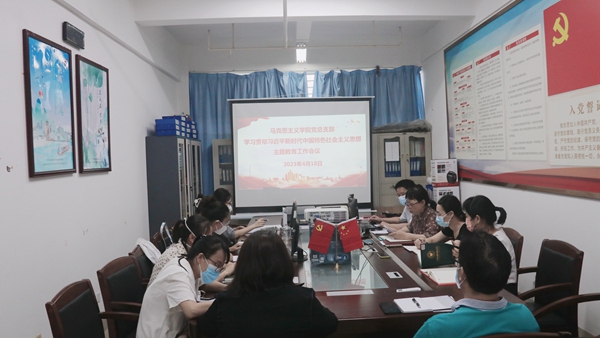 4月18日下午,马克思主义学院党总支部在学院党员活动室召开学习贯彻习近平新时代中国特色社会主义思想主题教育工作会议,党总支书记邢益承主持会议并作动员讲话,全体党员出席会议。