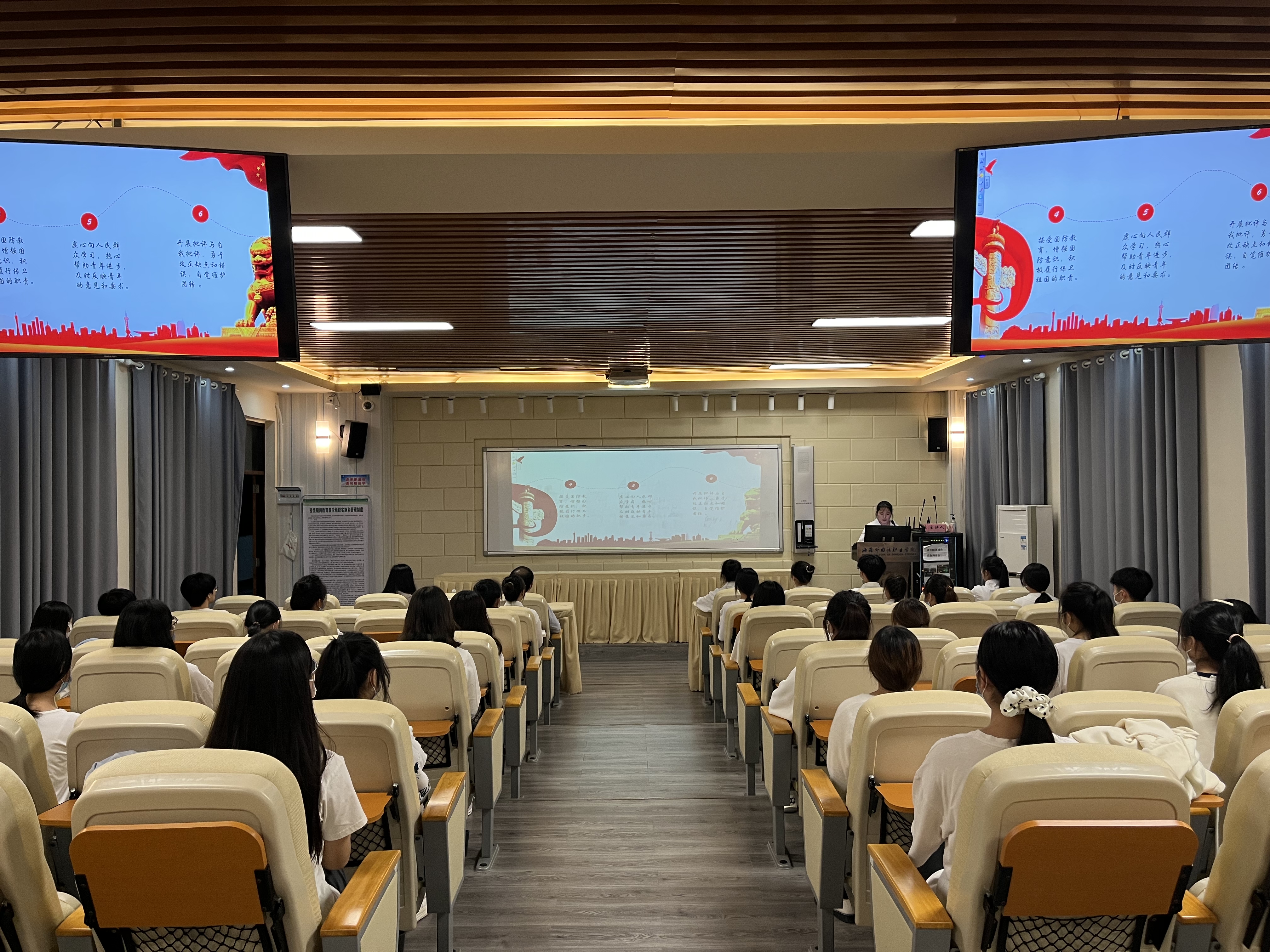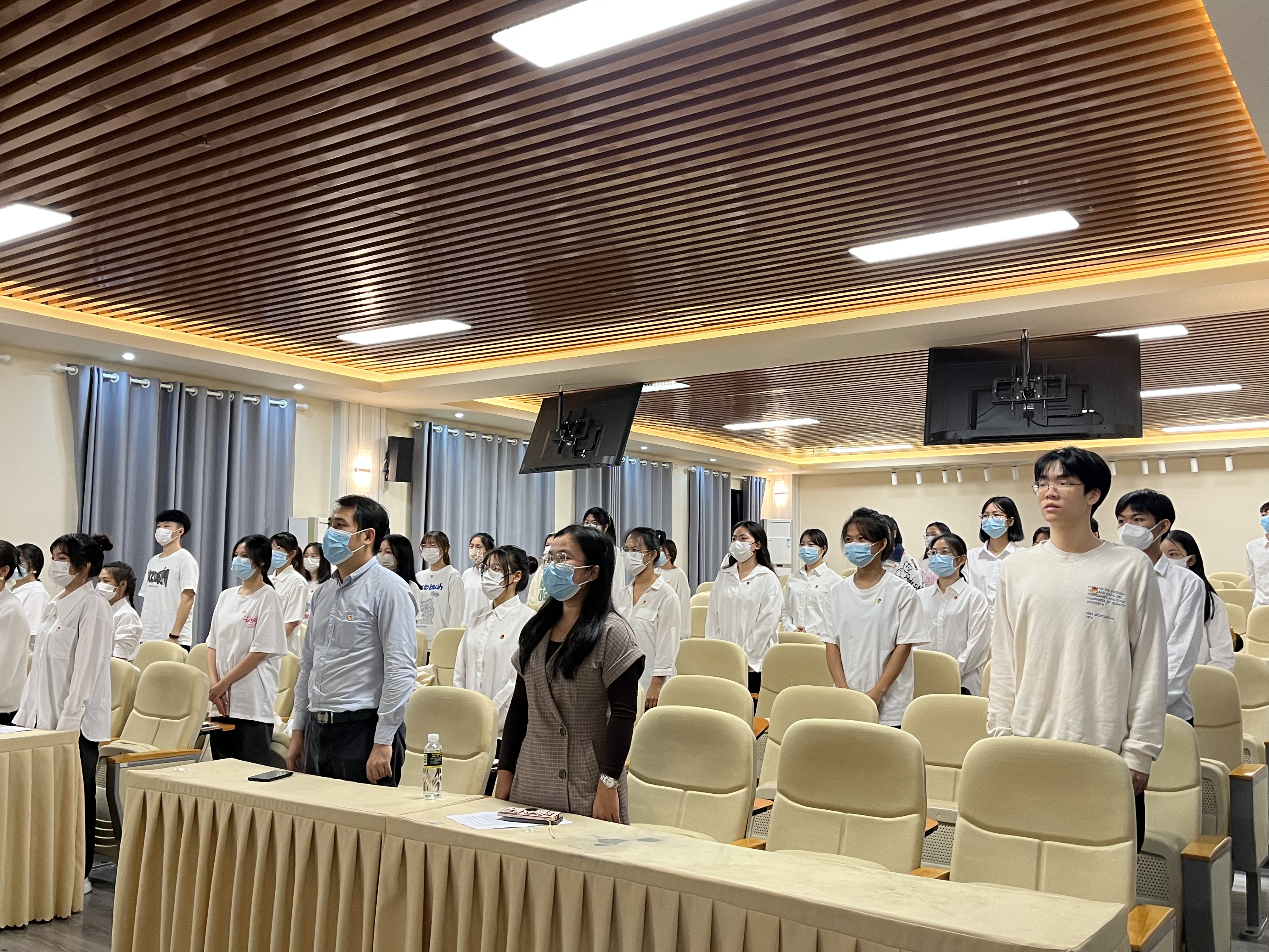 为深入学习宣传贯彻党的二十大精神,教育引领青年学生厚植爱国主义情怀,团结带领广大团员青年坚定理想信念。12月7日,2022年下半年入团仪式活动在综合楼BE101举行,校团委周宵老师、曾慧敏老师出席本次活动。