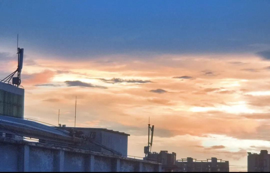 微醺的傍晚,时间过得很慢,夕阳肆意挥霍着她的余晖,云层也欣喜的染上了红晕,这时的海外院,似乎是橘子味的,葡萄味的,红苹果味的。