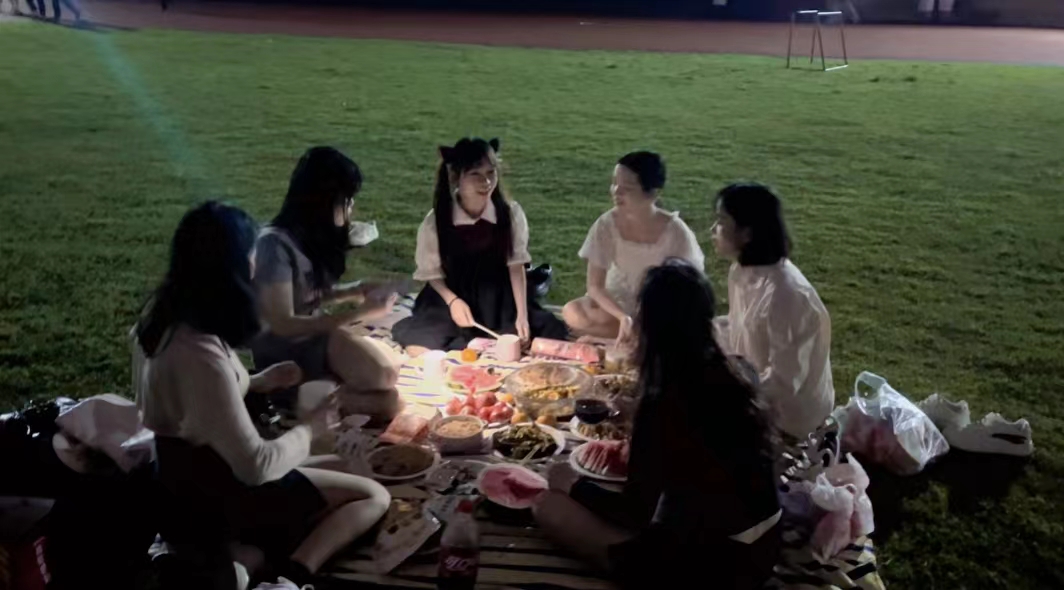 夜幕降临时,三两好友相伴带着呲呲冒泡的快乐汽,水清爽香甜的冰镇西瓜,在绿茵操场上铺开餐布,尽情享受着盛夏夜晚的美好时光。