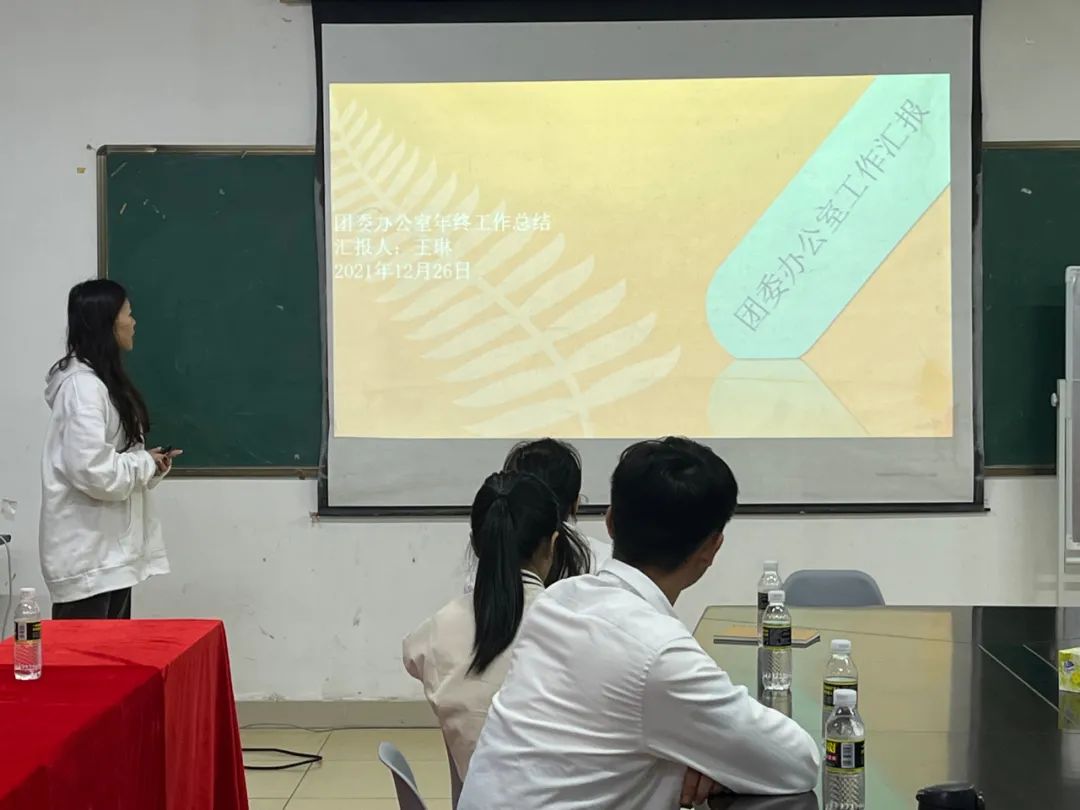 12月26日,我院团委于多媒体11召开了2021学年度团学干部述职大会。学院团委韩琪老师、周宵老师及全体团委和学生会各部门负责人出席此次会议。