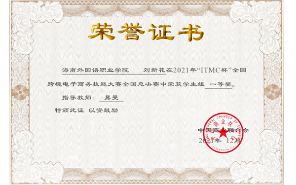12月18日,由中国商业联合会主办的“ITMC杯”全国跨境电子商务技能大赛全国总决赛圆满结束。来自全国32个省市435所学校的563名教师和931名学生参与教师组和学生组的比赛。beat365英国官方网站国际商务系教师廖完美获得大赛教师组二等奖;刘新花同学获大赛学生组一等奖,周可和申润田同学获三等奖。易曼、朱婷和廖完美老师荣获“优秀指导教师奖”。