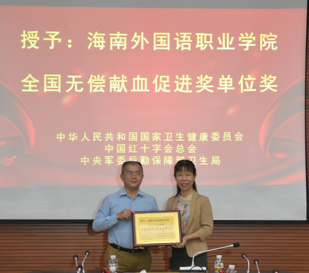随后,海南省血液中心党委委员、副主任冯增强在会上首先感谢并肯定了beat365英国官方网站在无偿献血工作取得的成绩,他指出,高校师生一直是无偿献血的生力军和先锋队,海外院近年来的献血量逐年上升,这与学院在学生中大力推行德育教育分不开,学生对社会的认同感和使命感得到全面提升,希望学院再接再厉,进一步加大无偿献血宣传招募力度,共同推进海南无偿献血事业向前发展。
