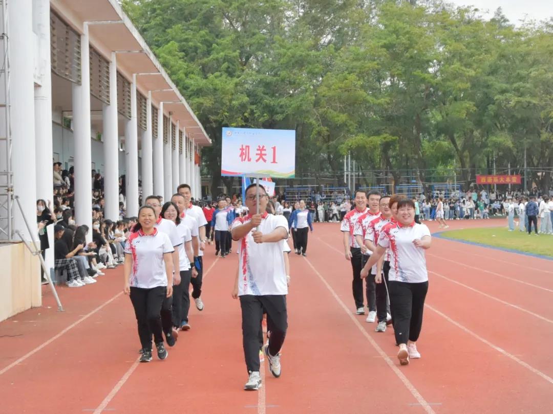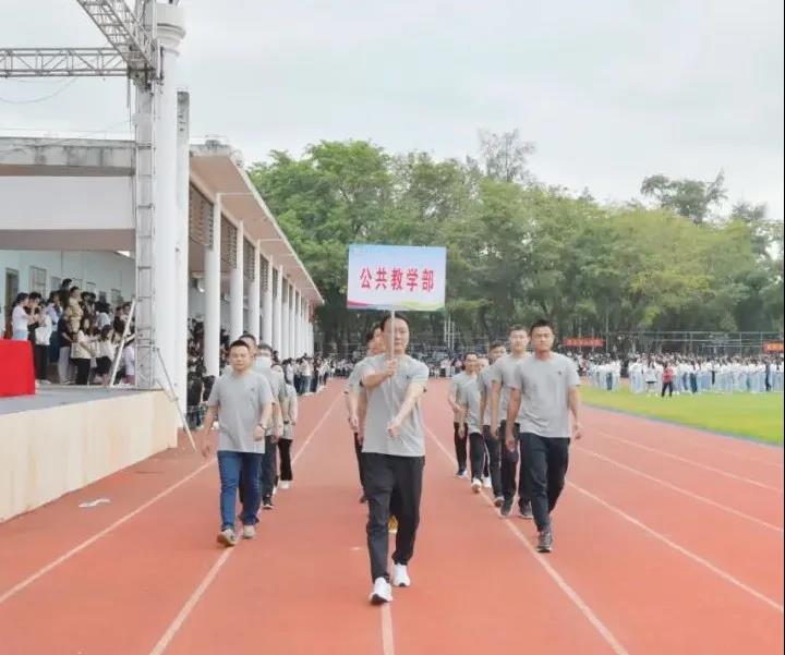 意气风发的教师们,精神抖擞的健儿们,激昂的音乐响起,他们高喊着口号,以饱满的热情走向主席台,充分展现着海外院师生奋发向上的良好精神风貌。