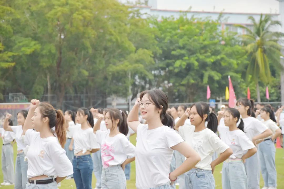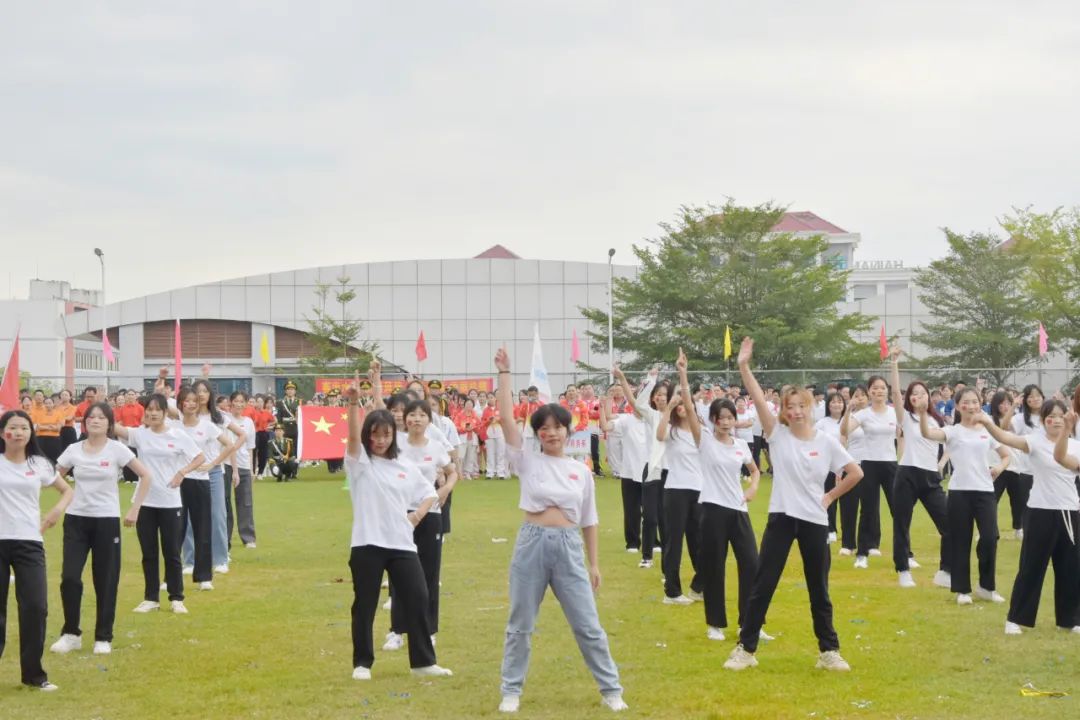 同学们欢快激昂、炫彩活力,每一个动作都展现着中国青年的蓬勃朝气,也是新时代下大学生对盛世中国的深情告白。