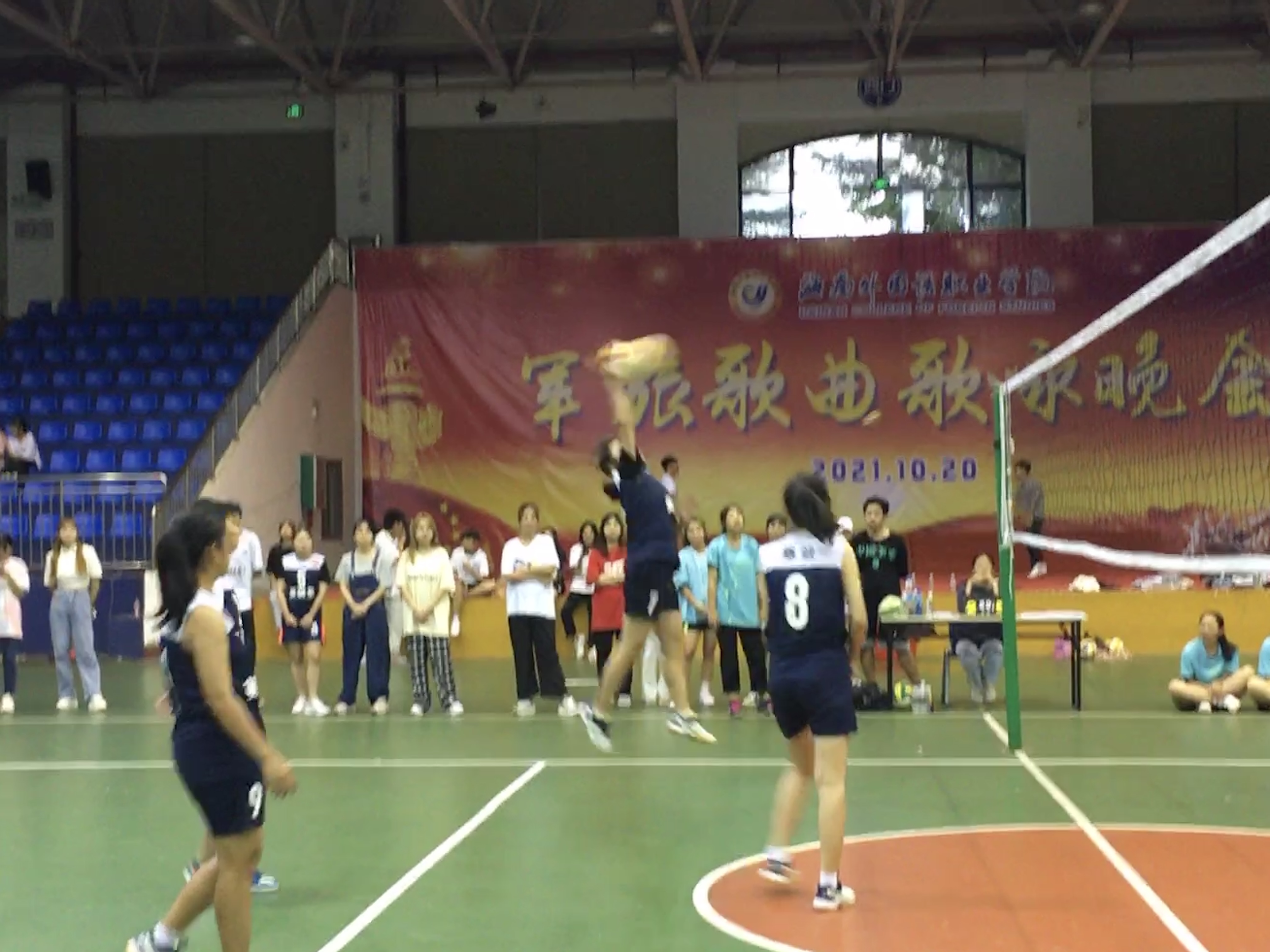 发球过网鲤鱼跃,扣球拦网猛如虎;战术过人得高分,掌声雷动是你的。