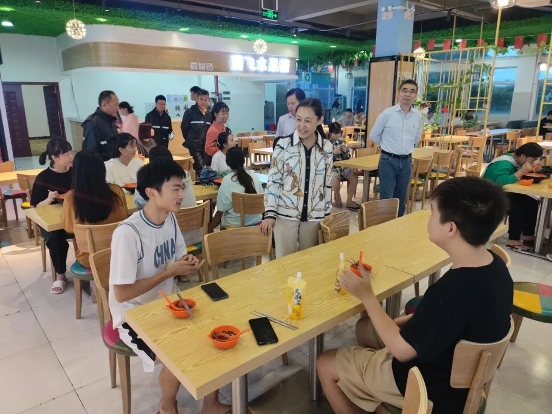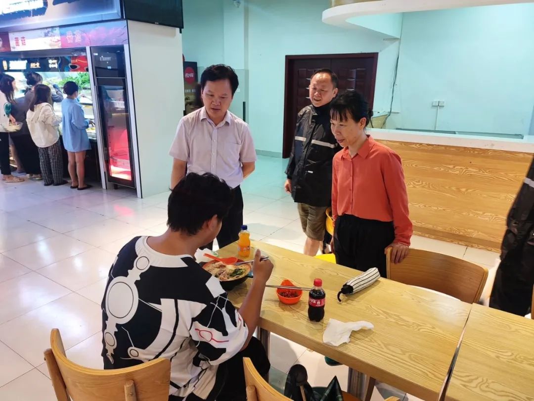 学院领导前往食堂巡查筹备情况,亲切询问用餐学生饭菜是否合口味,为同学们送去暖心关怀。用贴心、细心、爱心保障师生安全,让广大师生感受到实实在在的幸福感、安全感。