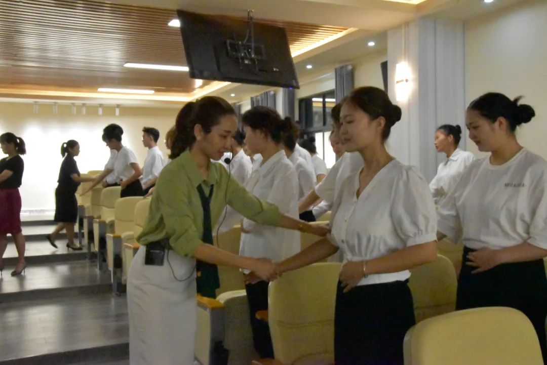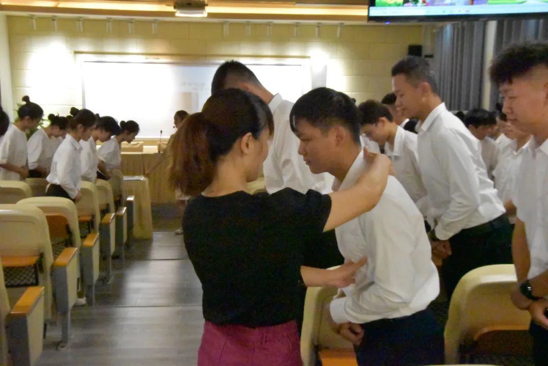 老师们给志愿者们进行了实操指导,着重指导站姿、坐姿、行姿、仪容仪表等动作,让志愿者们在实践中感受学习,使礼仪动作更具标准化、专业化。